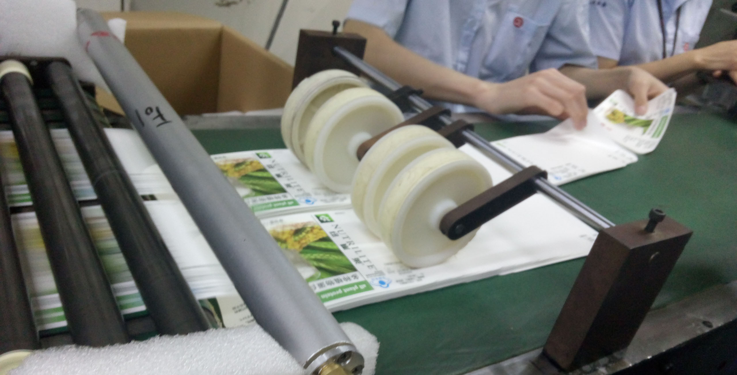 如果经过以上排查,仍未发现故障原因,就应该考虑叼牙滚轴是否有不滚动的现象,这一点极易被忽视,在此提醒各位业内人士一定要给予足够的重视。如果印品出现连续性的重影,并伴随有偏色现象发生时,应特别考虑叼牙滚轴是否出现故障。尤其是如果出现重影的形式为一张有重影、一张无重影,印品的偏色情况是一张正常、一张有偏色,那么就无须检查以上6项内容,故障原因基本可以锁定为“两个叼牙滚轴有一个不滚动”了。出现这类问题,应对不能转动的叼牙滚轴进行上油、松动处理。如果叼牙滚轴能够松动,则应对两个牙轴进行校正,确保叼牙叼力均匀;如不松动,则应拆除更换。