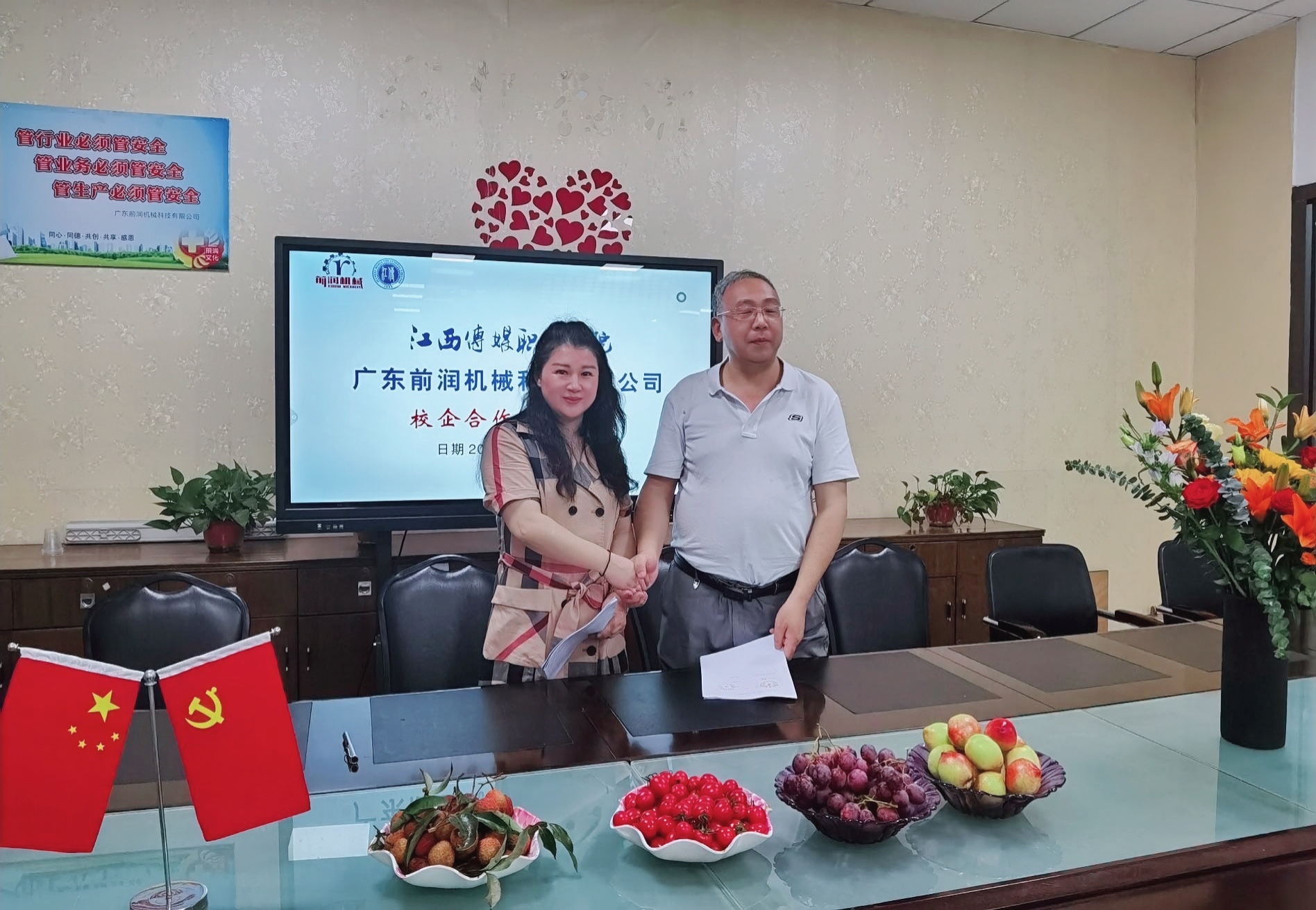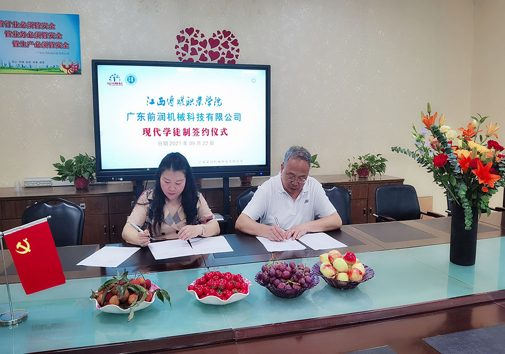 2021年05月22日,江西传媒职业学院与广东前润机械科技有限公司举行了校企合作(现代“学徒制”人才培养项目)签约仪式(广东前润机械举行校企合作签约仪式)。
