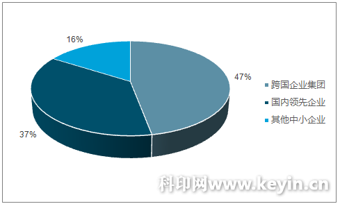 目前国内环保油墨行业主要由跨国企业集团、大型国内企业和其他中小企业组成。在 2014 年度环保油墨销售总额中,跨国企业集团销售占比为 47.00%,占据最大的一块市场份额。