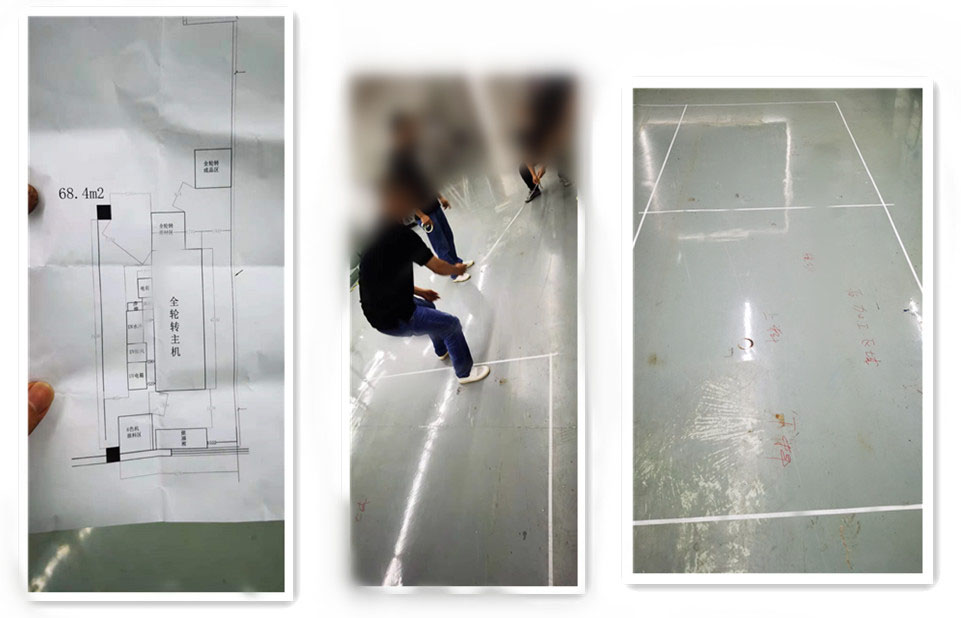 设备到厂前客户把摆放位置图纸和标定定位点,打印和标识出来了,规划好合理的摆放位置