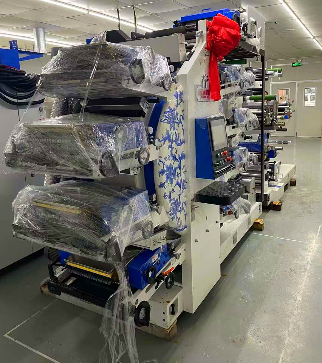 摆放好位置的前润卫星式轮转机,等师傅调试好就可以开印了。